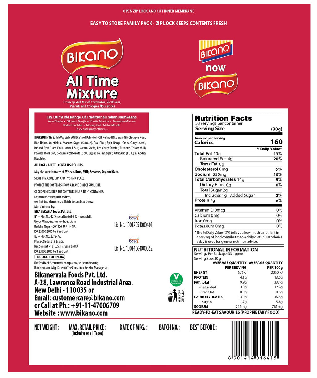 Bikano All Time Mix - The all time mixture is made with besan and has peanuts and matar in it.